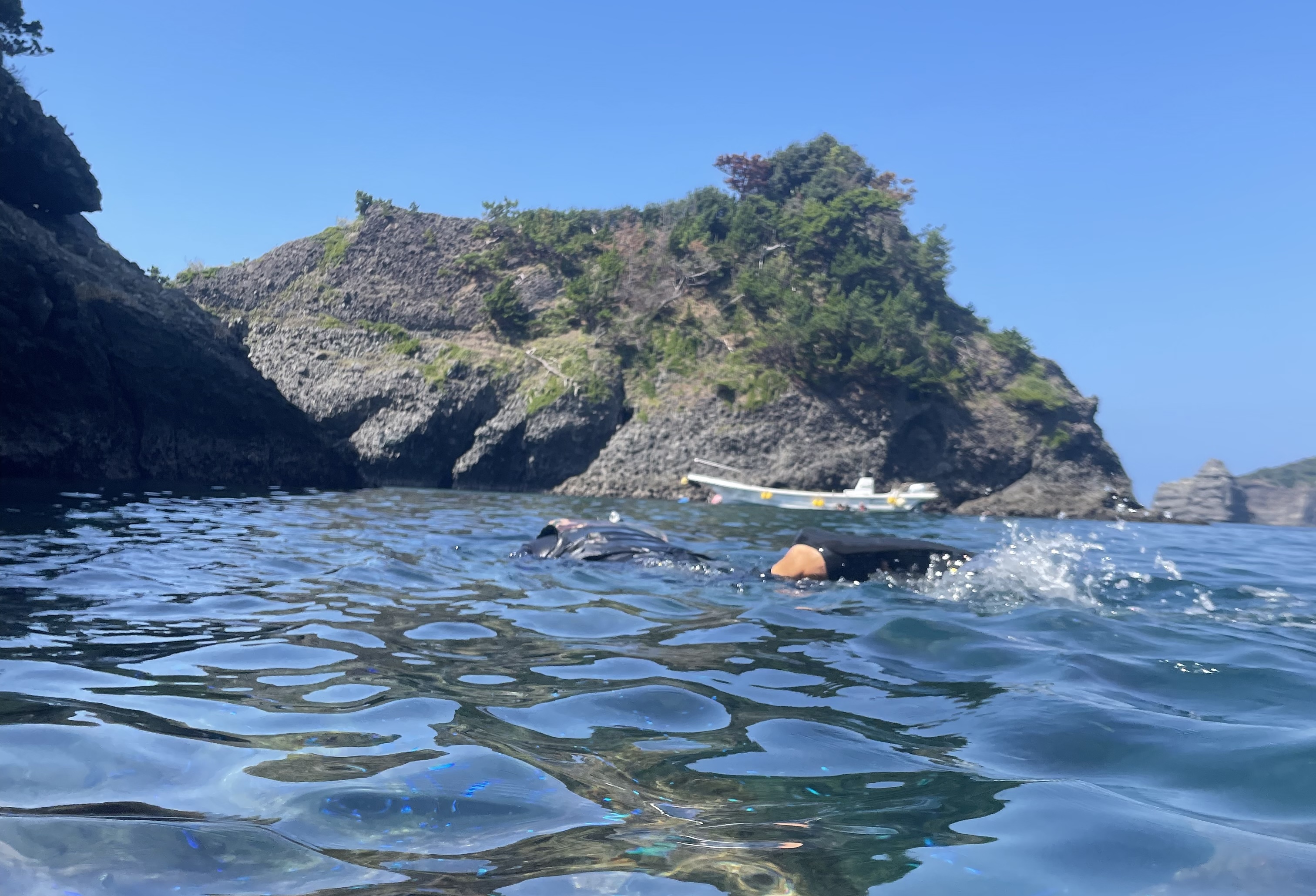 今回は早朝6時前に自宅を出発し、途中一回休憩を挟み、4時間強、10時20分にヒリゾ浜渡し船駐車場に到着。そのまま渡し船に乗り、平日にもかかわらず混んでいるヒリゾ浜へ。